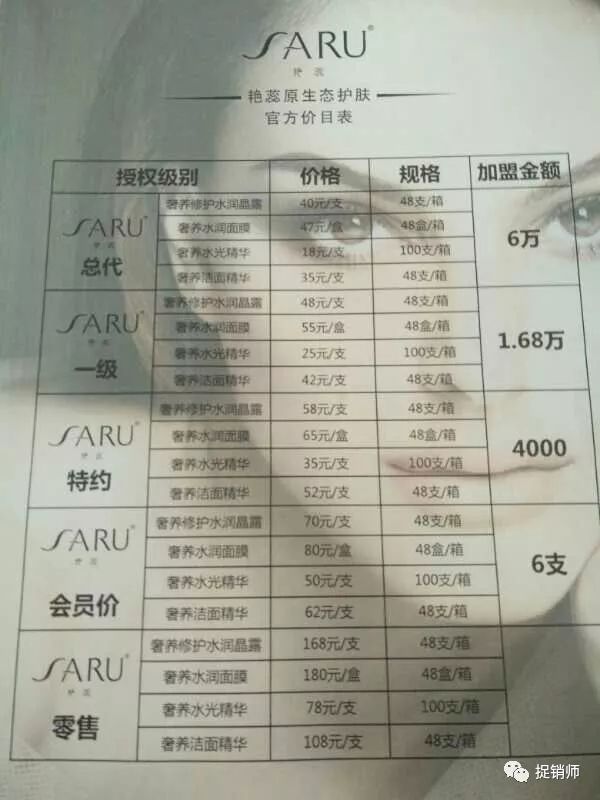 代理分为6个级别,以奢养修护水润面霜为例,零售价168元一支,48支一箱。