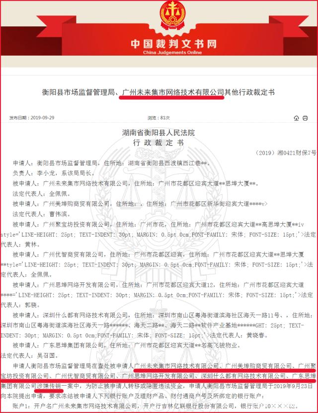 “未来集市”电商平台涉嫌传销被法院冻结十余个金融账户