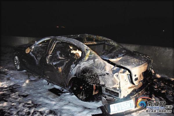 2018年3月2日20时,海南中线高速琼中至海口方向17公里处一辆宝马7系轿车发生火灾事故,“豪车”最终仅剩下一具车架。
