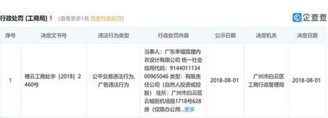 广州市白云区工商行政管理局对其行政处罚内容截图