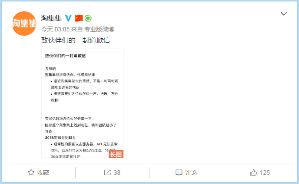 以下为淘集集CEO张正平致歉信全文: