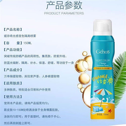 本网发现姬存希防晒喷雾自称有11种优势:智能变色瓶盖 ;防晒隔离;蓝光防护;美白保湿;冰镇舒缓 ;控油定妆;活化肌肤;高倍防水设计;持久裸妆 ;抗氧化;安全配方。