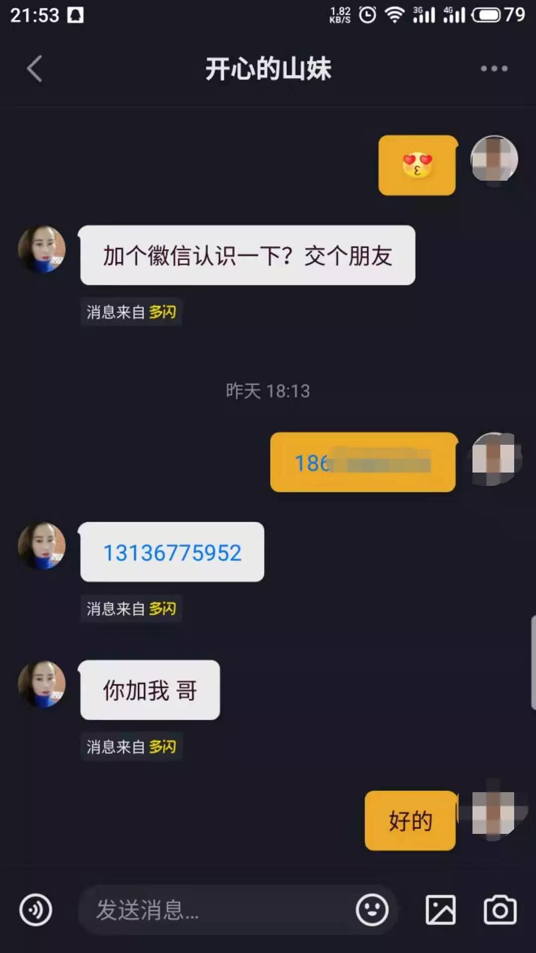 近日小编在抖音随便逛逛,结果有美女头像的让我加她微信,小编心理有点小激动,以为桃花运来了呢!