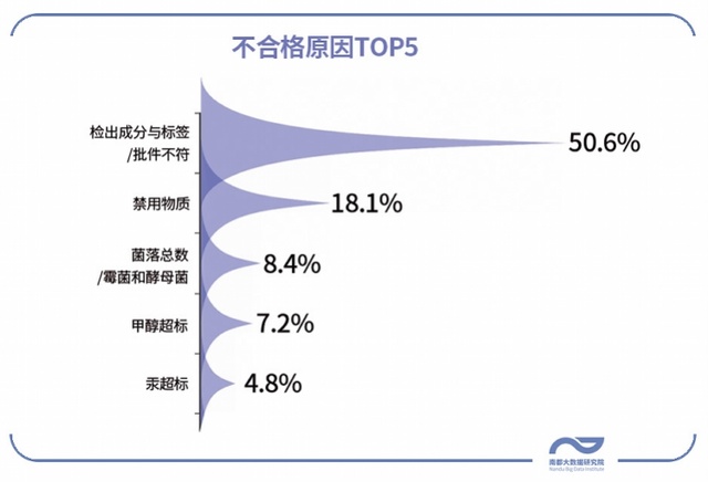 南都大数据研究院梳理发现,三季度被通报化妆品的主要不合格原因,分别是检出成分与标签/批件不一致,占50.6%;另外,18.1%检出禁用或不得检出物质;菌落总数/霉菌和酵母菌超标占比8.4%,为第三大原因。