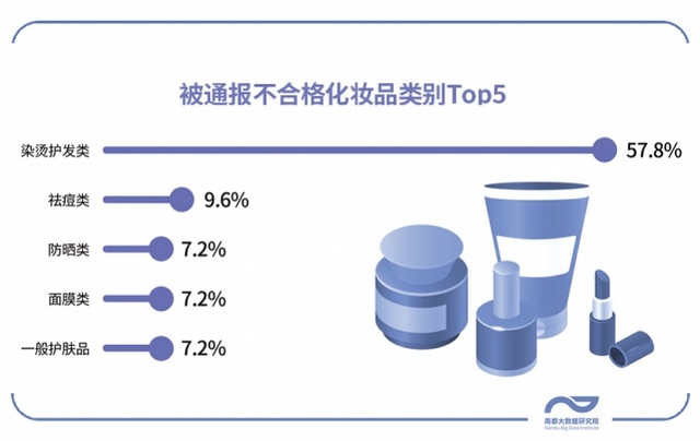 南都大数据研究院持续关注化妆品安全,发现第三季度又有83批次化妆品被国家及地方药监部门通报不合格,其中染发产品在二季度比重下降之后,重新攀高,占比达到57.8%。这些不合格化妆品,近两成检出禁用物质。此外,有三批次婴幼儿化妆品、5批次进口化妆品登上黑榜,部分涉嫌假冒。