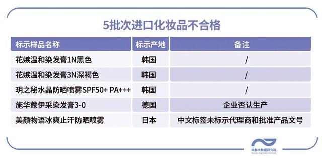 此外,通报显示,日本的美颜物语冰爽止汗防晒喷雾(90g/盒),样品中文标签未标示代理商和批准产品文号,也没有标示批号/生产日期,标示限期使用日期为2023年2月。德国施华蔻伊采染发膏3-0 企业否认生产,疑似为假冒化妆品。
