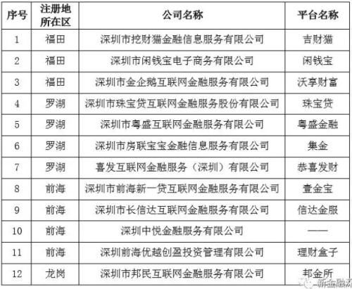 通知内容显示,这批退出的网贷机构共12家,分别是吉财猫、闲钱宝、沃享财富、珠宝贷、粤盛金融、集金、恭喜发财、壹金宝、信达金服、理财盒子、邦金所。