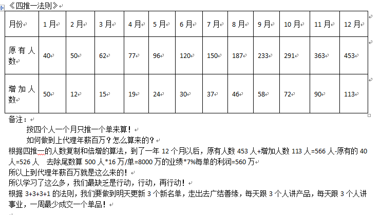 在林女士提供的一份名为“佳莱科技六会法则+四推一法则”的材料中,时代财经注意到,除了要求加入者不断拉人头扩大自己的团队外,还要做铺垫邀约客户,将其带到工作室“洗脑”,以此提高新顾客下单率。