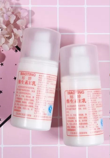 白色塑料按压嘴小瓶、红色字体的透明标签加上一个透明塑料盖,外观朴素得像上个世纪的化妆品,这就是“网红”维E乳。这一产品曾经创下7天卖出51万瓶的纪录,可见受欢迎程度。