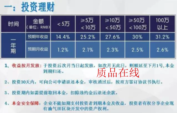 中油溢家以油井投资为名,面向不定向公众吸纳资金,一定时期后返本付息,根据《关于取缔非法金融机构和非法金融业务活动中有关问题的通知》的规定,已经涉嫌变种传销。如果胡伯益等人将集资而来的资金用于个人消费、挥霍,则更有可能涉嫌集资诈骗。质品在线将持续跟踪此事,并将向当地执法部门反馈中油溢家涉嫌非法集资一事。