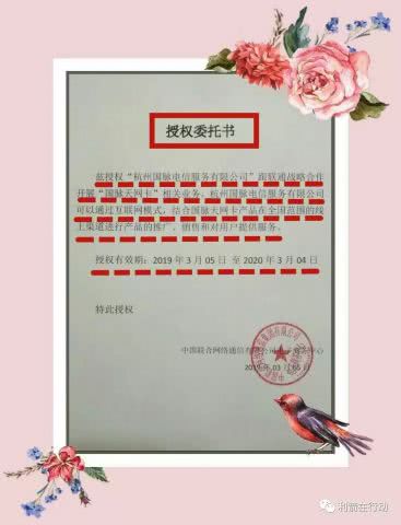 5G信号全国只有一张网,所有电信运营商都是租用中国铁塔集团的5G基站信号,信号无强弱之分,用户需要选择的是去哪家更便宜、哪家服务更好、哪家不但便宜服务好还能给老百姓一个创业入口利箭在线从微友爆料中看到了这样一份中国联通电子商务中心授予杭州国脉电信服务公司的授权委托书,真相大白了:“国脉天网卡”是中国联通的,只是授权给杭州国脉公司进行业务推广销售而已,“国脉天网卡”不是杭州国脉公司发行出来的。