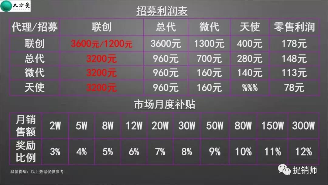 据悉,该公司共有九个团队。公司给每个团队规定月销售额,月销货2万元至300万元,分别给予团队3--12%的返利和补贴(奖励)。