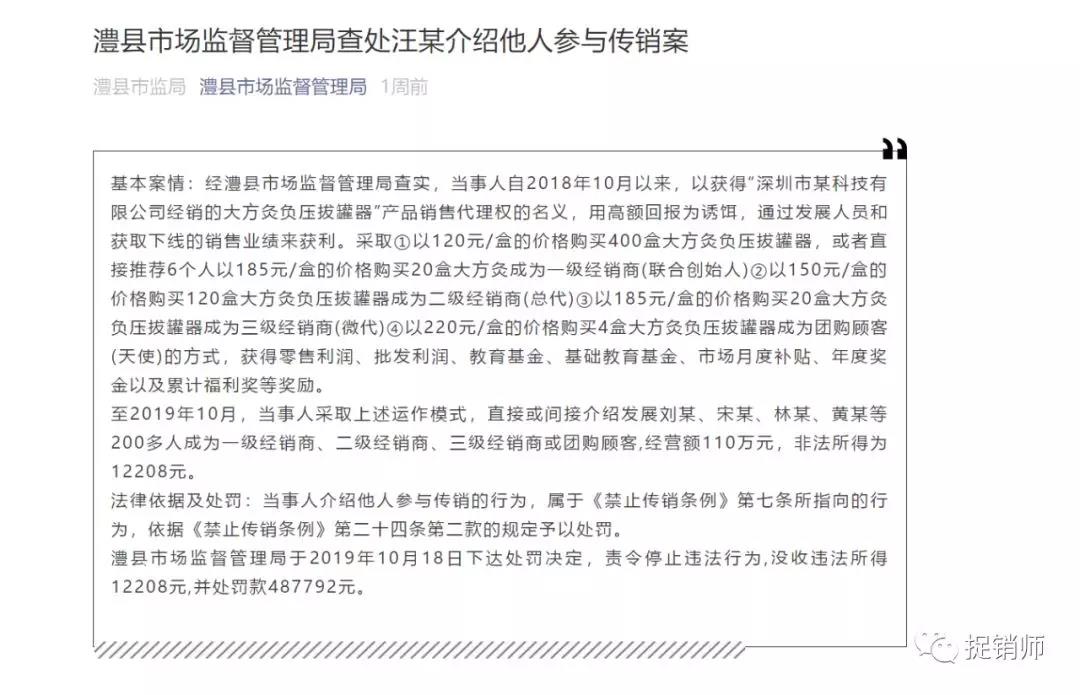 2019年10月31日康源达旗下大方灸代理商因传销行为被职能部门罚款可能尚属首例,但是肯定不会是最后一例,值得关注的是康源达公司会以何种理由进行甩锅。