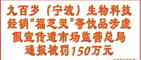 九百岁经销“福芝灵”等饮品涉虚假宣传被罚150万元