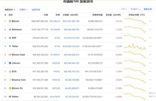 据信息与交易平台CoinMarketCap.com统计,市值排名前十的数字货币周五集体下跌、惨遭血洗。