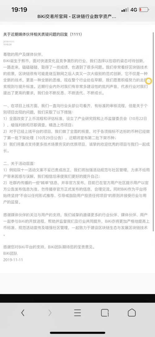 “币圈被严查是迟早的事,野鸡交易所的泛滥,项目方披着“区块链”外衣的假技术,让币圈一次次上演着韭菜哭鼻子的风气,更何况像币安、BIKI、抹茶这样的交易所一直负面满满,早就该严查严惩。”币圈业内人士向记者表示。