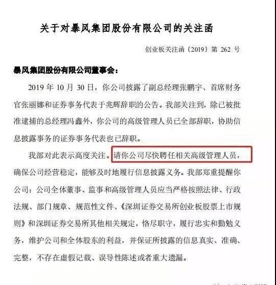 暴风集团高管几乎全部辞职的局面引发深交所关注,10月31日早间,深交所创业板公司管理部对此火速下发关注函。