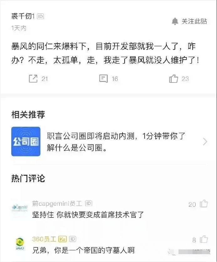 此前,网上一直传着某个职场社交app上的一张截图,暴风的开发员工只剩下一个人,如今官网app都挂了,是否这个小哥也离职了。