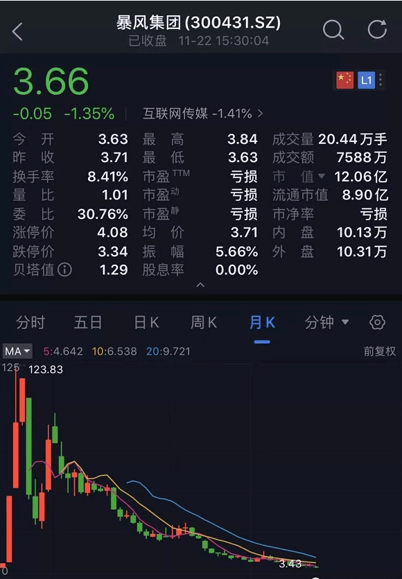 然而风光未能持续长久。随着冯鑫被捕,暴风集团的股价也从最高123元一路下跌至最低3元,曾经400亿市值的大牛股如今却蒸发超九成。