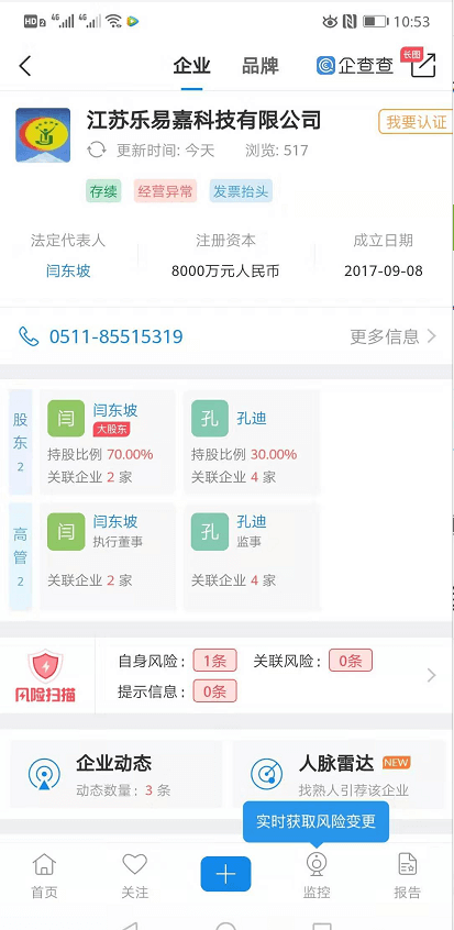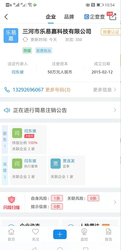 但是其对外企业为河南乐易嘉实业有限公司,法人和股东却另有其人,风险预备的非常棒。