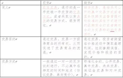 以下表格将期货和现货做一个简单对比,以期读者对两者有基本认识。