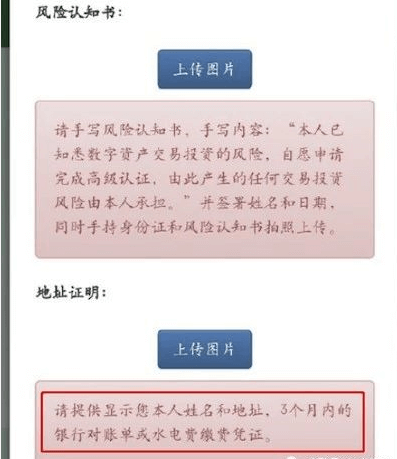 完成高级认证,需要上传包含地址的银行流水或水电费账单