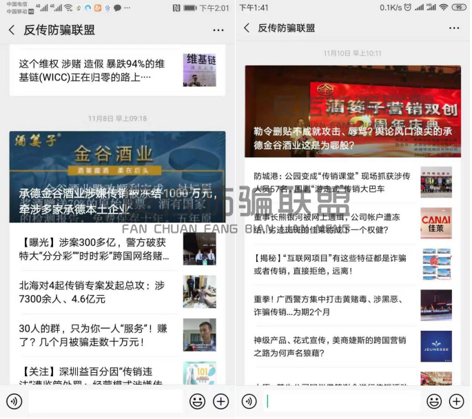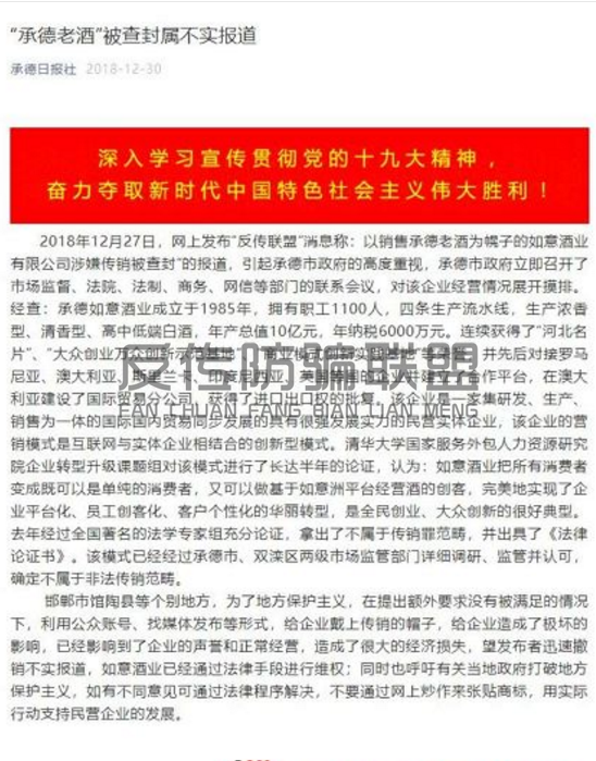 11月8日,反传防骗联盟发布了一篇承德金谷酒业涉嫌传销被冻结1000万元,牵涉多家承德本土企业引爆网络。
