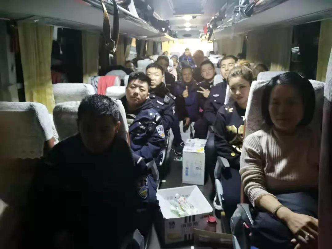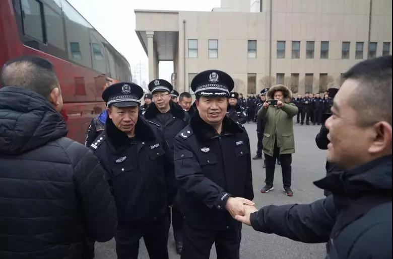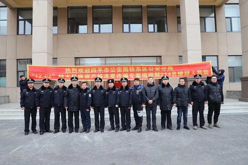 12月8日7时30分,专案组租用8辆长途客车将214名犯罪嫌疑人全部押解回平,市局在办公楼前举行仪式迎接专案组凯旋。市局党委副书记、常务副局长朱君,市局党委委员、政治部主任曹俊峰,副局长宿晓出,铁东区副区长、公安局长李炳辰,市局相关部门、直属单位领导和铁东分局部分领导参加欢迎仪式。仪式上,朱君常务副局长代表市局党委对市区两级公安机关联手侦办“1202” 特大民族资产解冻诈骗案成功收网表示祝贺,向参与侦查、抓捕和押解工作的全体同志致以亲切慰问。