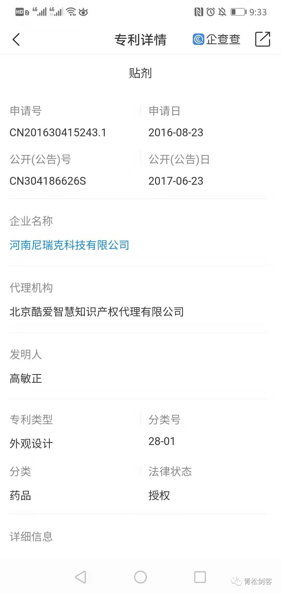 专利证号:ZL2016 3 0415243.查无此专利号。有外观设计专利:CN2016 3 0415243.1