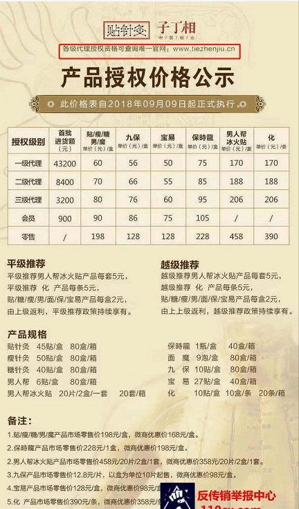 该表自2017年5月27日起正式执行。该公司产品包括贴针灸、糖针灸、瘦针灸、男人帮、九堡贴、面魔。
