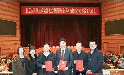 贴针灸在北京市科学技术奖励大会暨2019年全国科技创新中心建设工作会议上的获奖场景。
