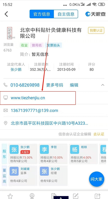 贴针灸官网(图片来源于天眼查)