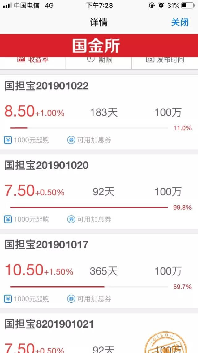 2、除了给自己贴国资的标签外,国金所还把自己模样,搞得特别吓人,名字就以“国”字头,给人一种值得信赖的印象,其所有标的项目名称,更是均以“国担保+年月+序列号”命名。
