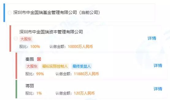 从公司股权结构看,深圳市中金国瑞基金由深圳市中金国瑞资本管理有限公司100%持股,穿透股权结构看,其实控人是自然人秦鹏,持股99%。同时,该机构在2014年6月4日登记成私募证券投资基金管理人,目前公司旗下备案的私募基金有10只,包括股票策略量化、混合策略等。