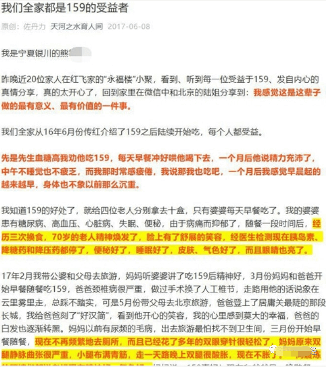 但是在网上有众多以“佐丹力159”素食代餐的群,这些群的成员主要由佐丹力159的销售者和使用者组成,这些群体每天都在探讨或称称赞佐丹力159的功效和作用,在他们的口中,瘦身、消痘,甚至高血压、高血脂、糖尿病,以及腰腿疼痛,在服用“159”一段时间后都消失了。