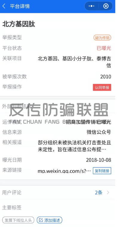 反传防骗联盟将持续关注北方基因肽市场虚假宣传相关信息,希望广大消费者提供线索。