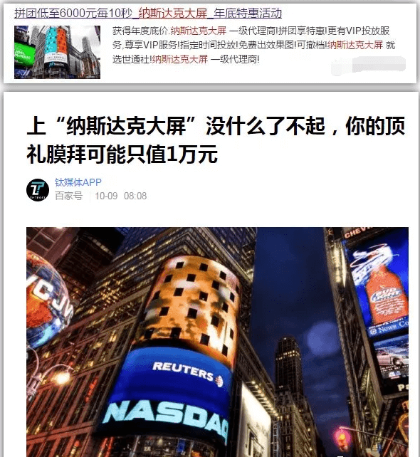 其实,这就是一个广告牌。辣么多骗子公司上这个屏,也没有见哪个公司上纳斯达克了!