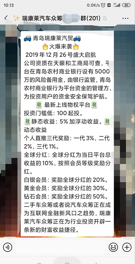 青岛瑞康莱汽车众筹,疑为涉嫌传销的财富收割机?