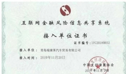2019年11月20日,获得互联网金融风险信息共享系统接入单位证书;