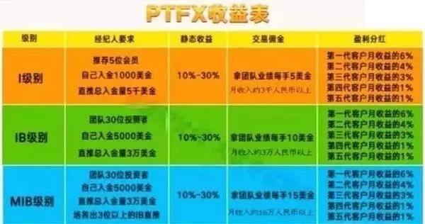 “普顿的经纪人有I(介绍人)、IB(外汇经理人)、MIB级别(高级经理人)、1星PIB和2星PIB等5个级别。”这名经纪人向记者透露,“普顿外汇”表面上是通过炒外汇赚钱,实际上是通过“分级传销”模式拉人头赚钱。这种“分级传销”模式在“普顿外汇”内部叫外汇经纪人,就是任何一个投资人注册成功,那么他自身就是一个外汇经纪人。