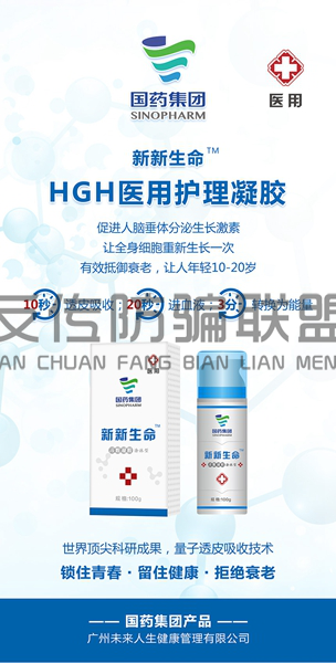 据公开资料显示,国药集团HGH医用护理凝胶商标来源、监制单位、生产单位都是国药集团药业股份有限公司,技术指导为国药集团广州医药大学,运营单位为广州未来人生健康管理有限公司。