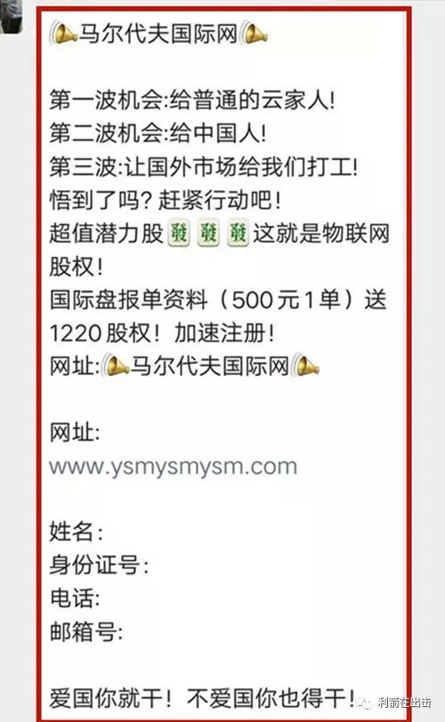 现在另外一个传销组织“云数贸马尔代夫”又在微信群里面,QQ群里面全部靠洗脑进行传销活动,还谎称:”马尔代夫“的YSM是数字资产,央行三令五申,并且政府一直严打虚拟币一类。这个传销是有人冒用张健进行的传销活动。因为张健都在监牢中服刑,至于说的”国家保护“都是一派胡言!也没有对传销进行调控一说,法律是无情的,法律不是儿戏!