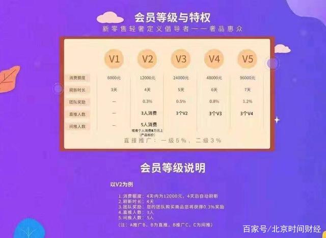 除购买商品之外,发展下线也能在奢品惠众获得佣金,下级人员可以继续发展其他下线。只要被拉进来的新会员有消费,其“上线”每次都能从其消费金额中抽取佣金、升级会员等级(如下图)。