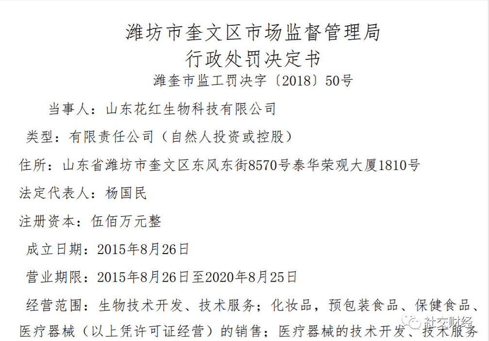 然而知名品牌的药企走进微商并没有得到好的口碑,虚假宣传、涉嫌传销甚至宣扬暴富梦想等违规行为被曝光。而花红药业操盘微商的是一家名为山东花红生物科技有限公司,企查查显示,山东花红生物科技有限公司法定代表人是黄晓伟,实际控制人是杨国民。
