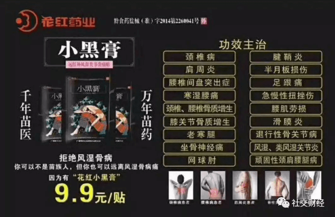 其中花红微商卖的“小黑膏”实际名为“远红外风湿关节炎痛贴”,是贵州苗药药业有限公司研发生产出的一种用于治疗风湿性关节炎及由风湿性关节炎引起的疼痛、麻木、关节肿胀病症的辅助治疗的产品,为国家食品药品监督管理局批准的医疗器材。该产品存在不良反应是个别皮肤易过敏的人群,在使用中可能会产生接触性瘙痒反应。如遇不良反应,出现有皮肤红肿、水泡等应停止使用本品。