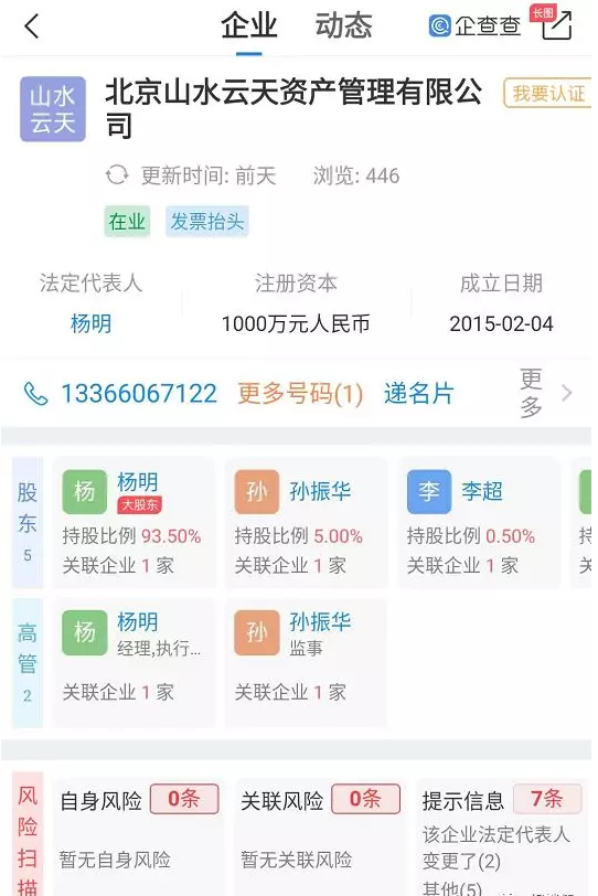 其中本色世界商标持有者为北京山水云天资产管理有限公司(以下简称北京山水云天)成立于2015年2月,法人杨明(持股93.5%,),注册资本1000万元,实缴0元。2020年1月7日法人由豆军华变更为杨明,同时变更的包括投资人、董事、经理、监事等高管。
