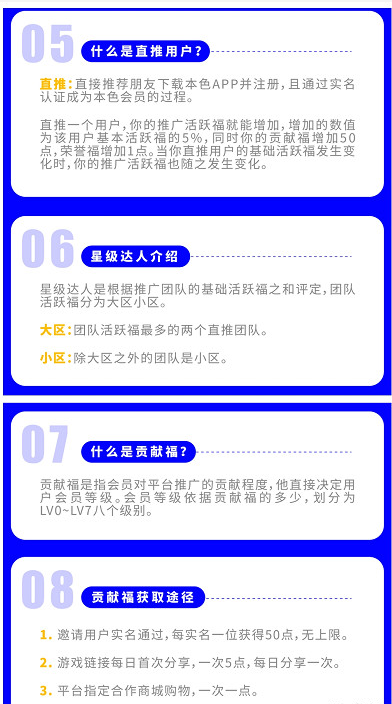 邀请用户实名通过获得贡献福,每实名一位获得50点,无上限。2.游戏链接每日首次分享,一次5点,每日分享一次。3、平台指定合作商城购物,一次一点。