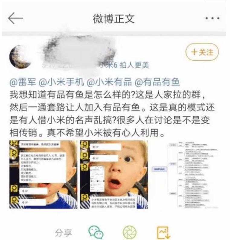 “小米有品有鱼的制度是小米有品的负责人、佛系推手团老大、云集的法务团队花了几个月的时间敲定的。只有两个目的,一是在法律容许的范围之内;二是保证普通人都可以月入百万。千亿市值的小米每一步都是提前布局,再突然搅局,不会去干一件连普通人都觉得无脑的事情。”……
