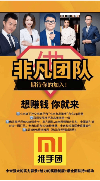 如上多种宣传小米“有品有鱼”的“暴富”软文充斥着互联网,但是本网在各大推送“有品有鱼”的软文中很容易看到“佛系推手团”的介绍。据了解,佛系推手团作为一面社交电商领域顶级运营的旗帜,诞生了20余位实现财富自由的高级顾问,近1000名推广顾问团队长。