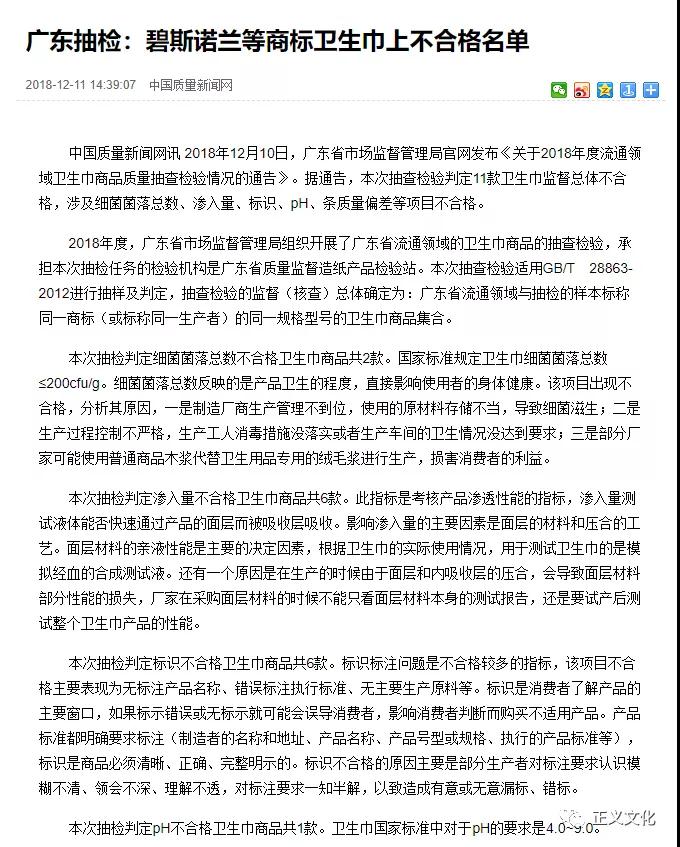 不仅制度模式涉嫌传销,产品质量也令人担忧,早在2018年,碧斯诺兰女神卫生巾就曾被曝抽检不合格。